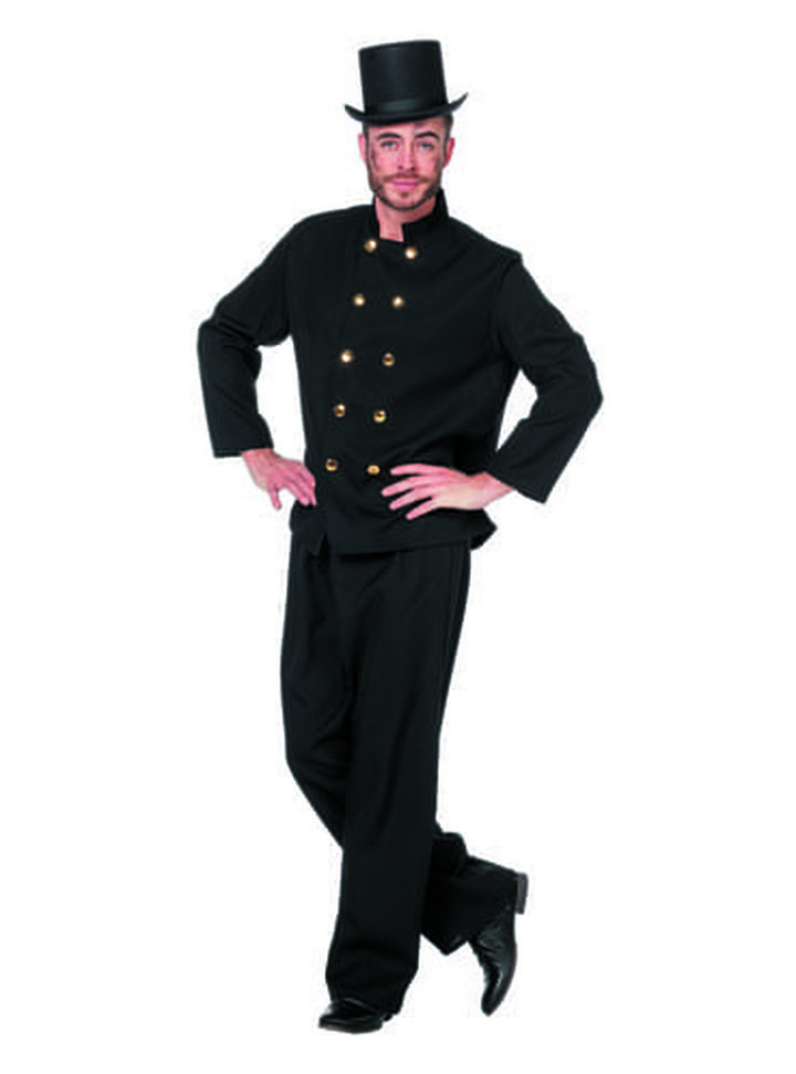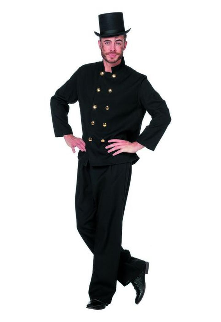 Vintage’owy charakter Czarny garnitur, cylinder, złote guziki
